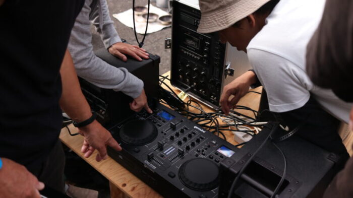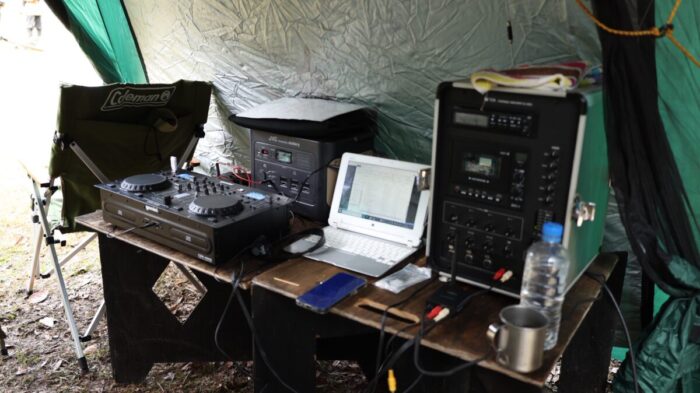前回大会の大きな反省点であった、会場から離れた駐車場へのアナウンス不足によるタイムスケジュール遅延という課題。これに対し、私たちは駐車場にスピーカーを設置し、WiFiを利用して本部席から音声を飛ばすシステムを採用しました。