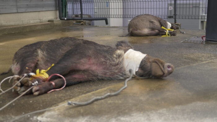 10メートルという至近距離。そのわずかな間隔に設置した2か所の罠に、中型のメスが2頭、同時にかかっていたのです。