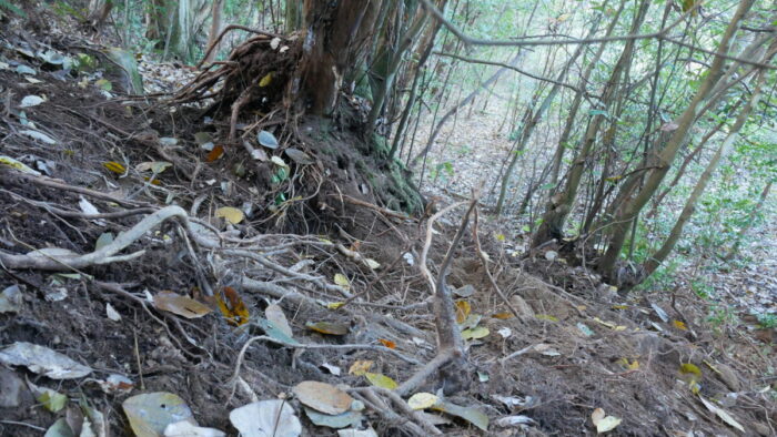 捕獲の余韻に浸る間もなく、私はさらに里山の奥へと足を踏み入れました。なぜ、このタイミングで、この場所だったのか。その答えを探すための痕跡調査です。山の中を歩き回り、猪たちの「動線」を一つひとつ紐解いていくと、興味深い事実が浮かび上がってきました。