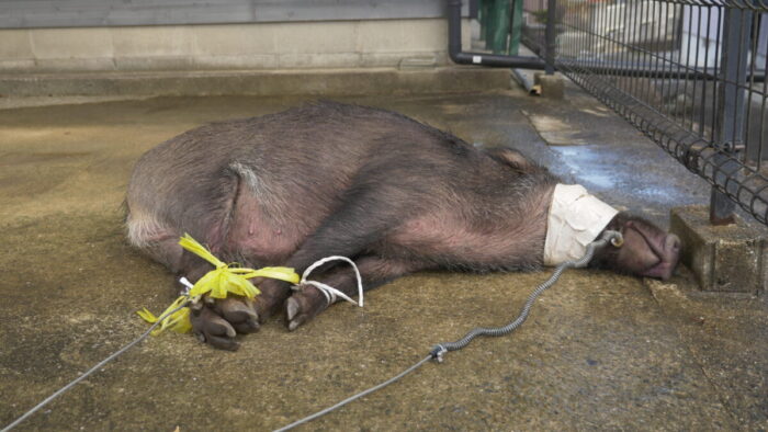 罠の踏板は落ちている。猪は確実に踏んでいる。しかし、ワイヤーが足首を捉える前に、猪は闇へと消えていきました。